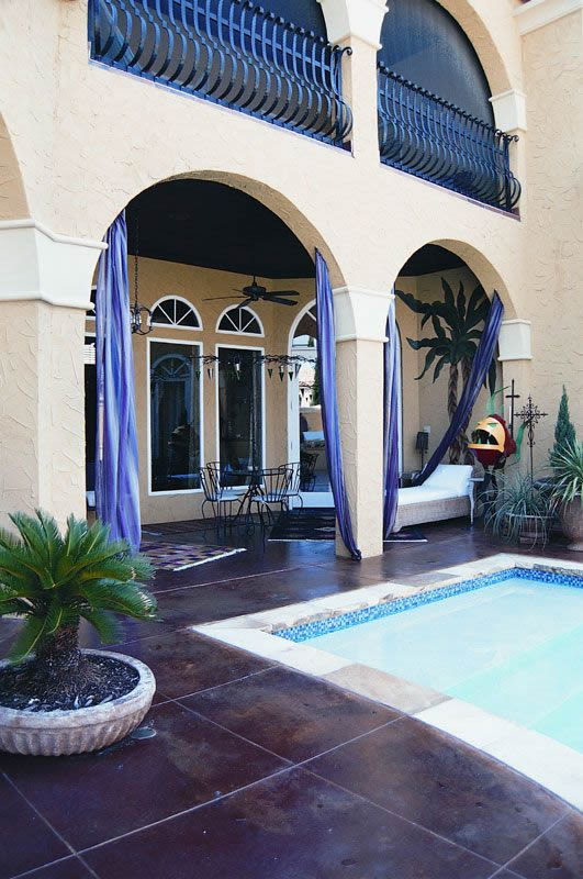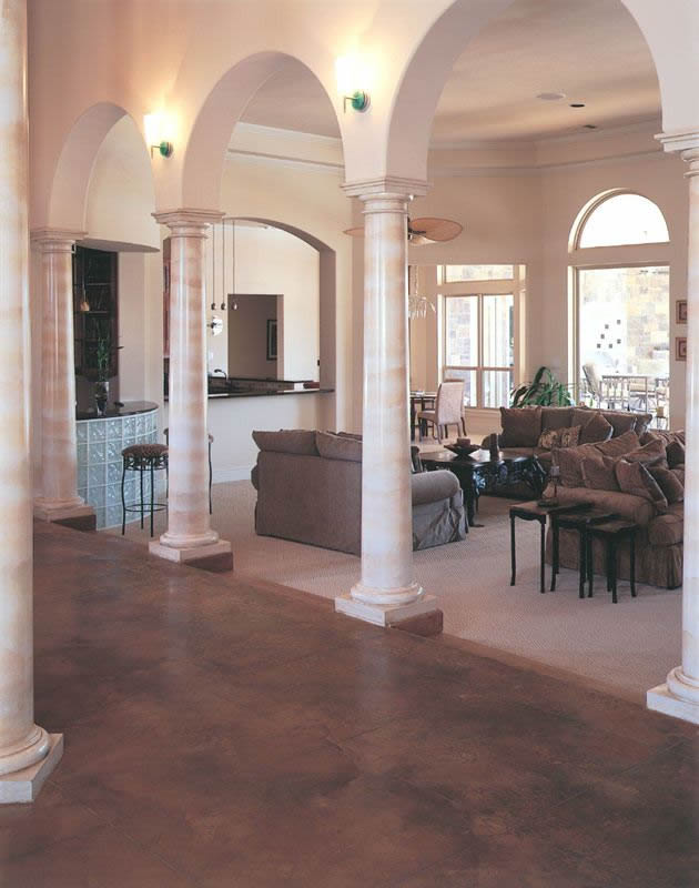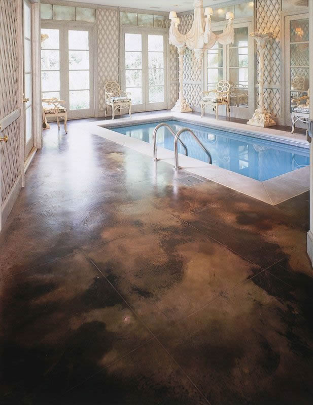The creative options and colour choices with concrete staining are endless. Stained concrete can transform an interior floor, walkway, patio, pool deck, driveway from plain to spectacular. Each stained floor is unique and is often personalised with input of the owner or designer.